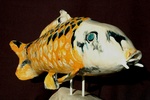 2011De Koi een opmerkelijke vis, gevangen in keramiek. Gemengde techniek.